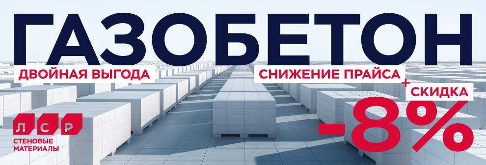 Сообщаем вам, что в период с 1 ноября по 30 ноября 2025 года, у Вас есть возможность приобрести газобетонную продукцию ЛСР по самым выгодным условиям с дополнительной скидкой 8% от действующего прайс-листа!